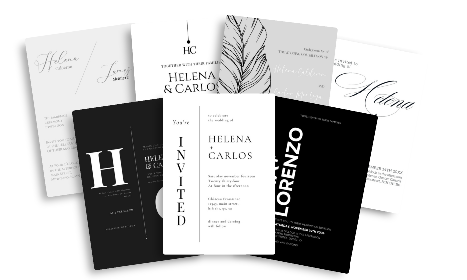 We're based in Canada, but provide template designs worldwide, using the most recent trends, professional designs, and quirky templates for your wedding.