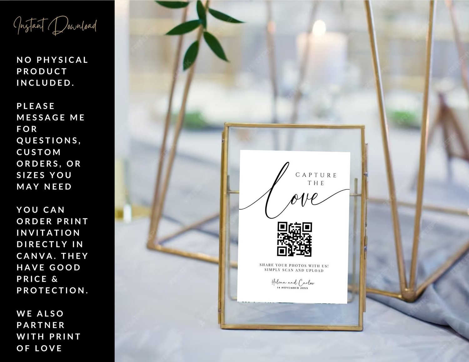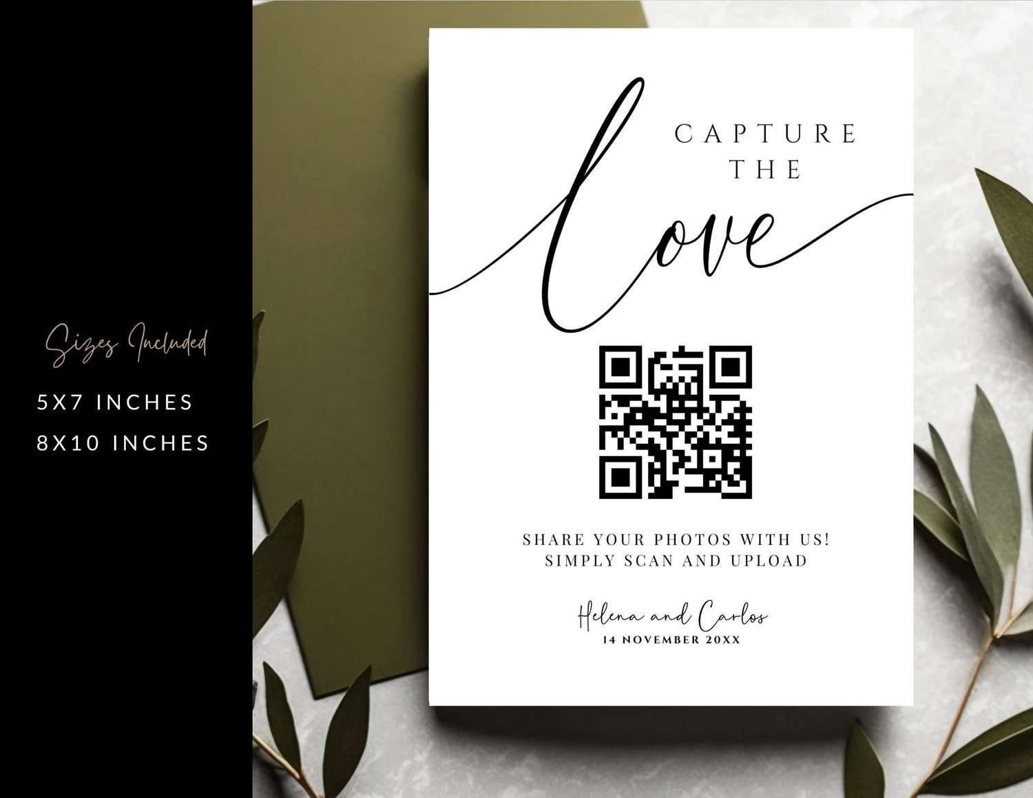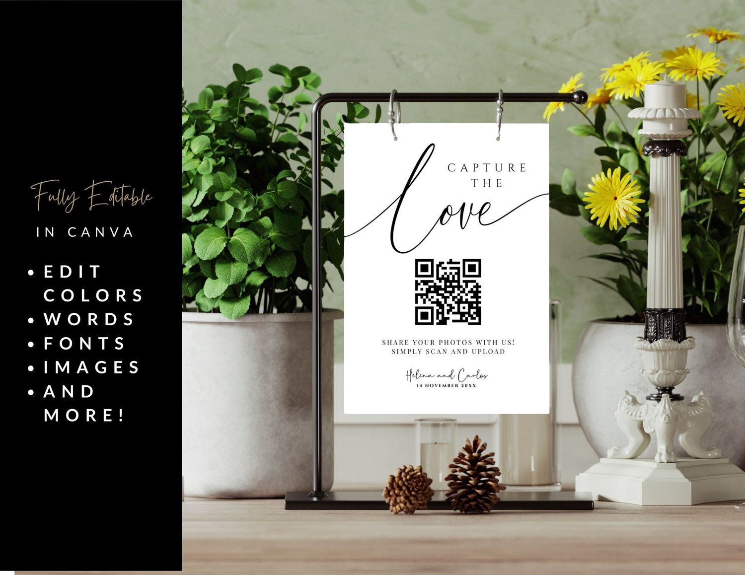 Make your wedding day even more memorable with our "Capture the Love" QR Code Sign. This charming sign is designed to encourage your guests to take photos and share their special moments with you.