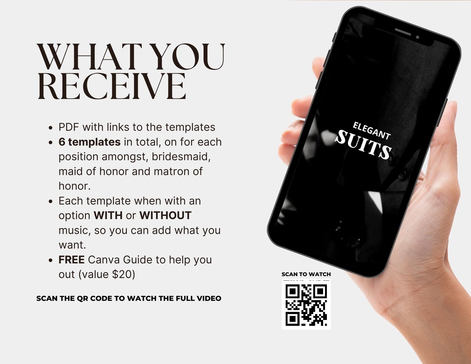Looking for additional customization or unique features? Explore our custom video options in our boutique's custom orders section. Whether you want custom changes to our template or a completely bespoke groomsman proposal video, we have you covered. You will find these options in the Custom Order section of the boutique.