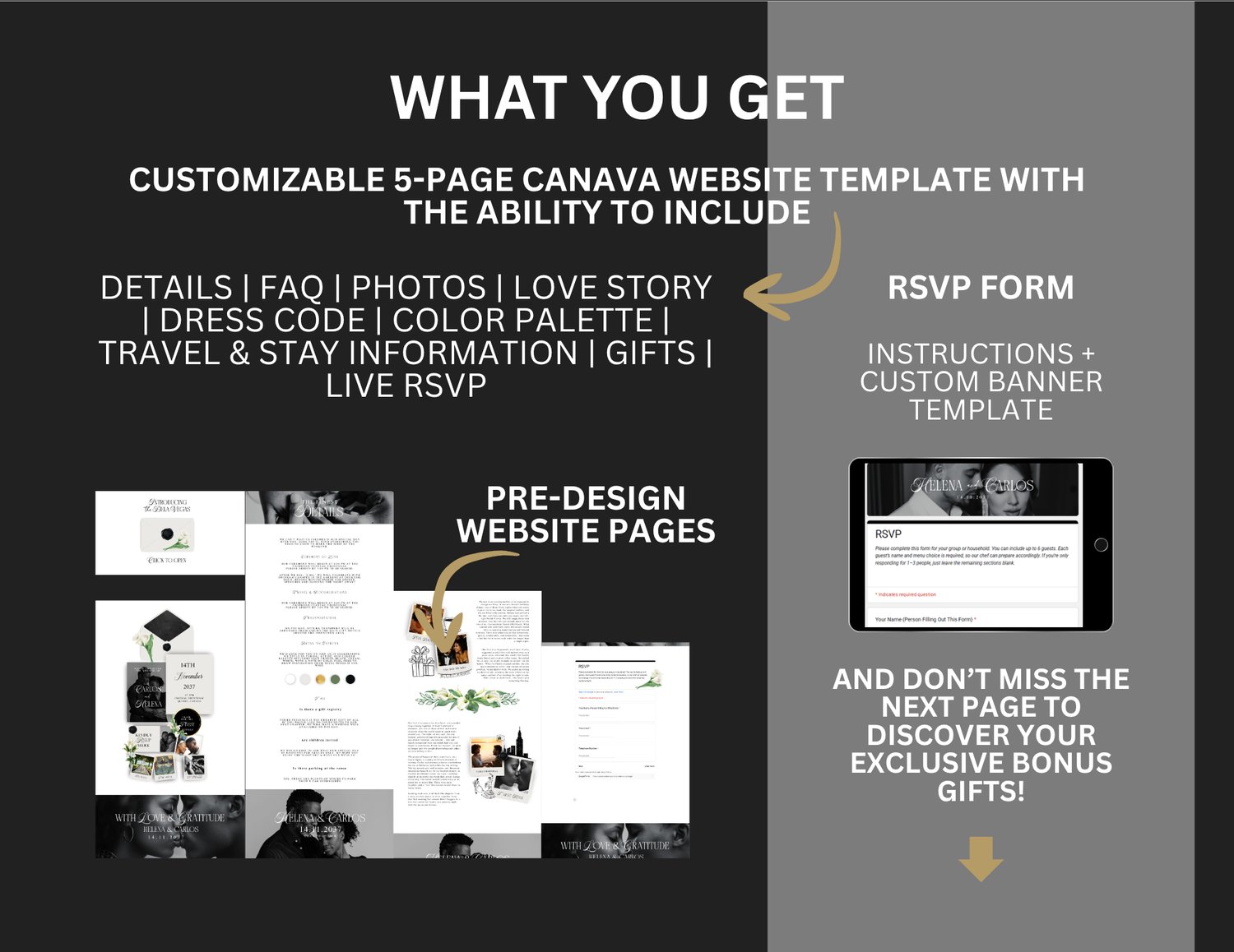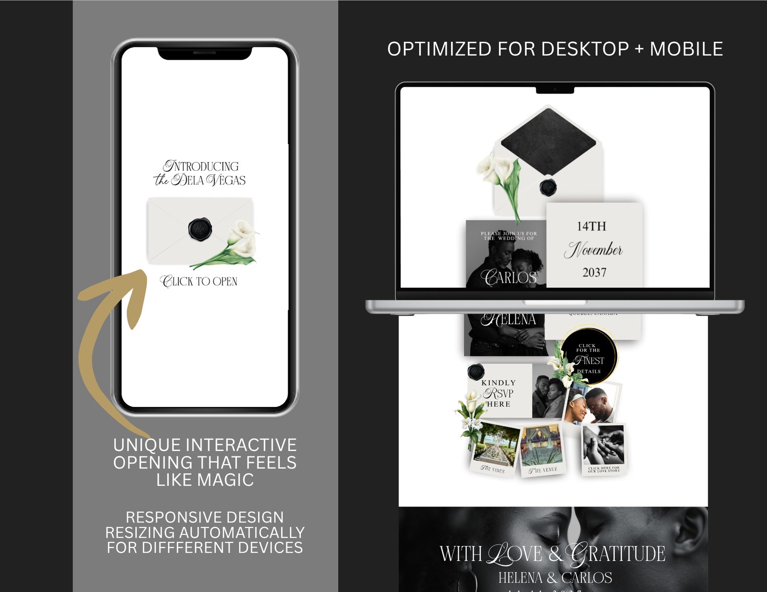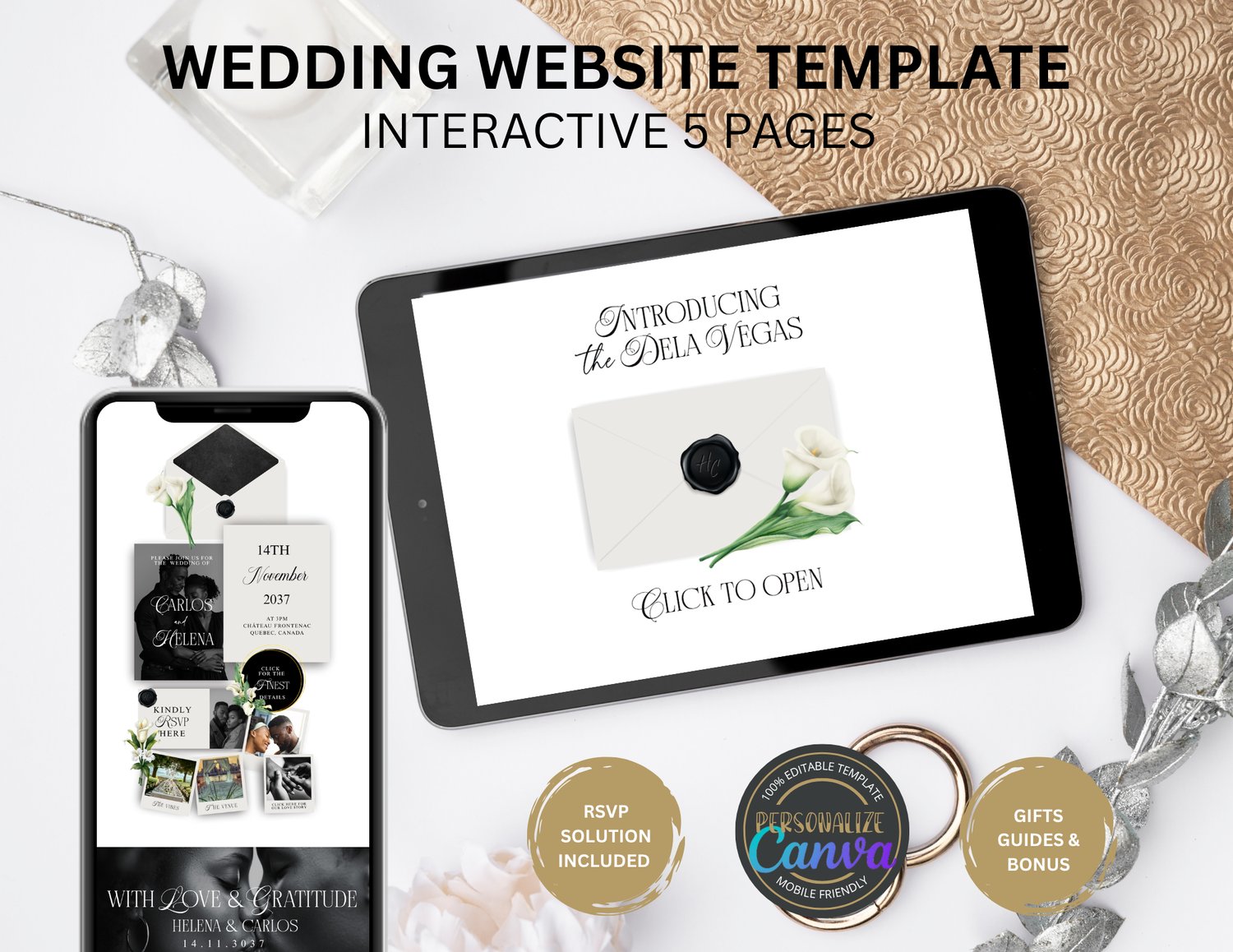 ✔ Interactive 5-Page Layout — Love Story, Details, Gallery, RSVP, and optional Thank-You page