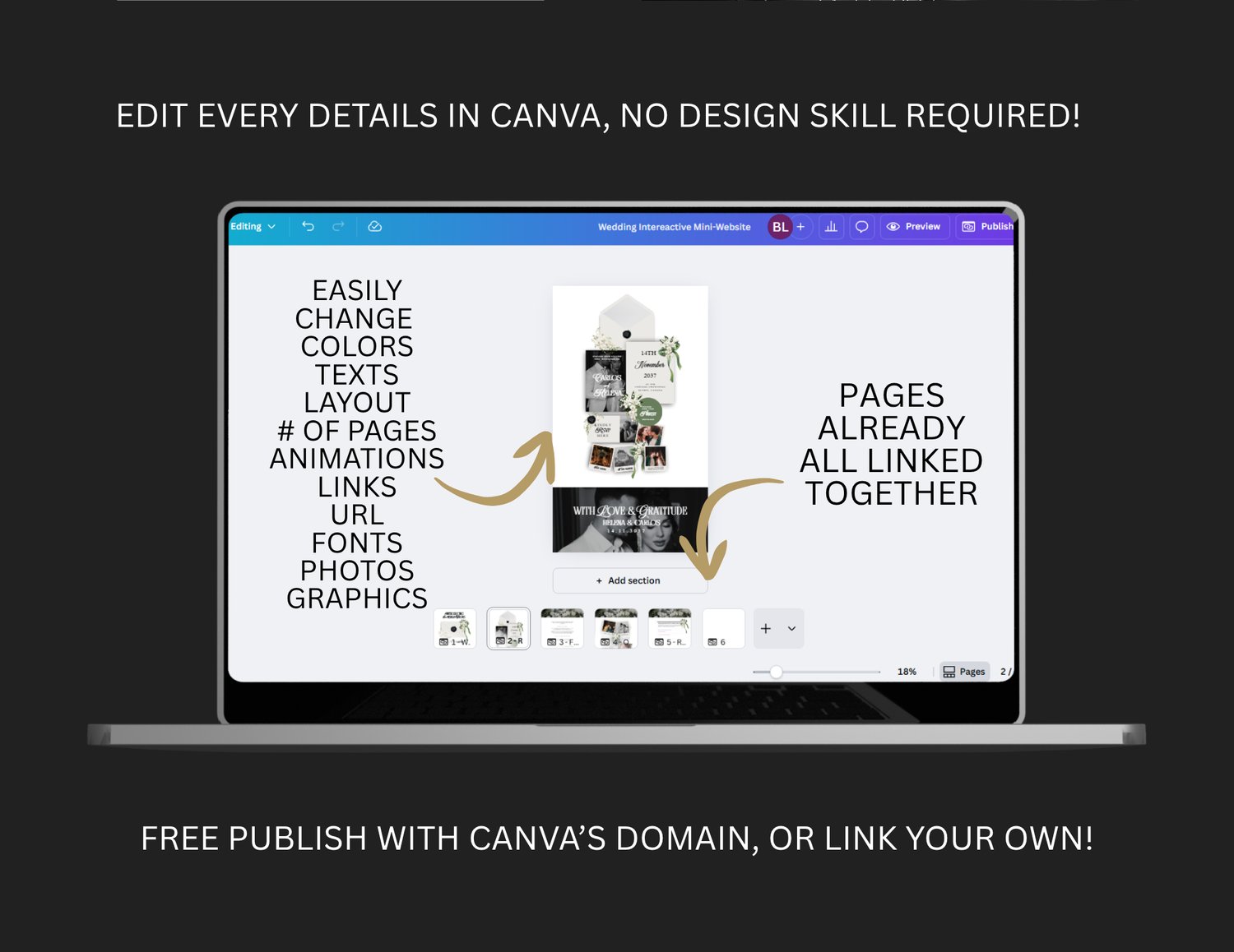 ✔ Publish Free or Use Your Own Domain — Works beautifully with Canva’s free website link or your custom URL