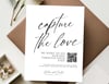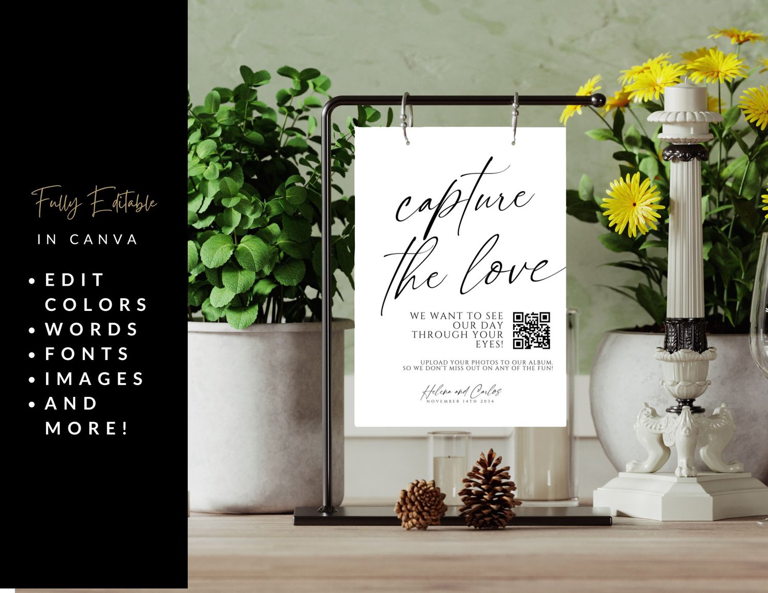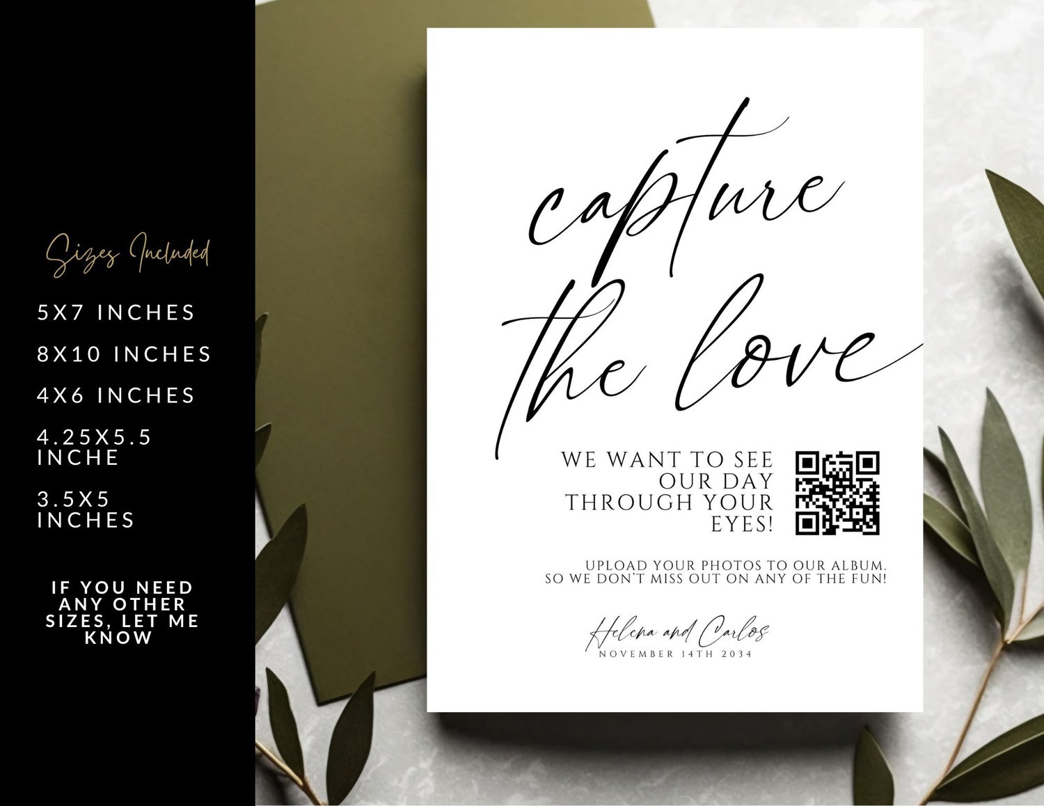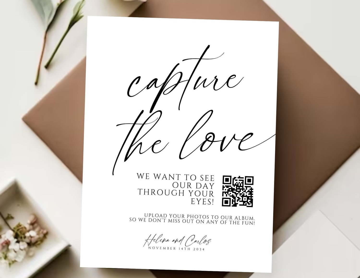 Make your wedding day even more memorable with our "Capture the Love" QR Code Sign. This charming sign is designed to encourage your guests to take photos and share their special moments with you.