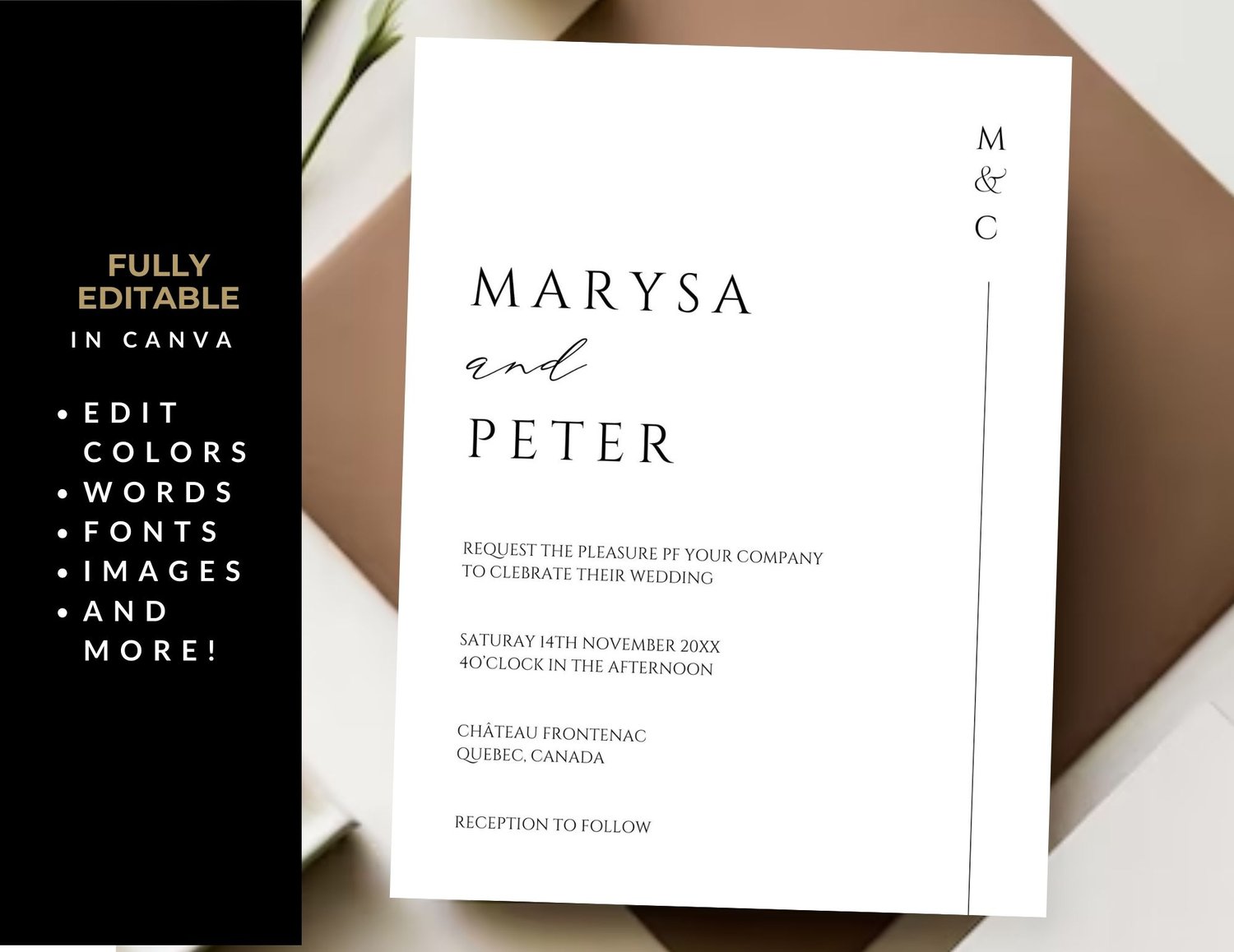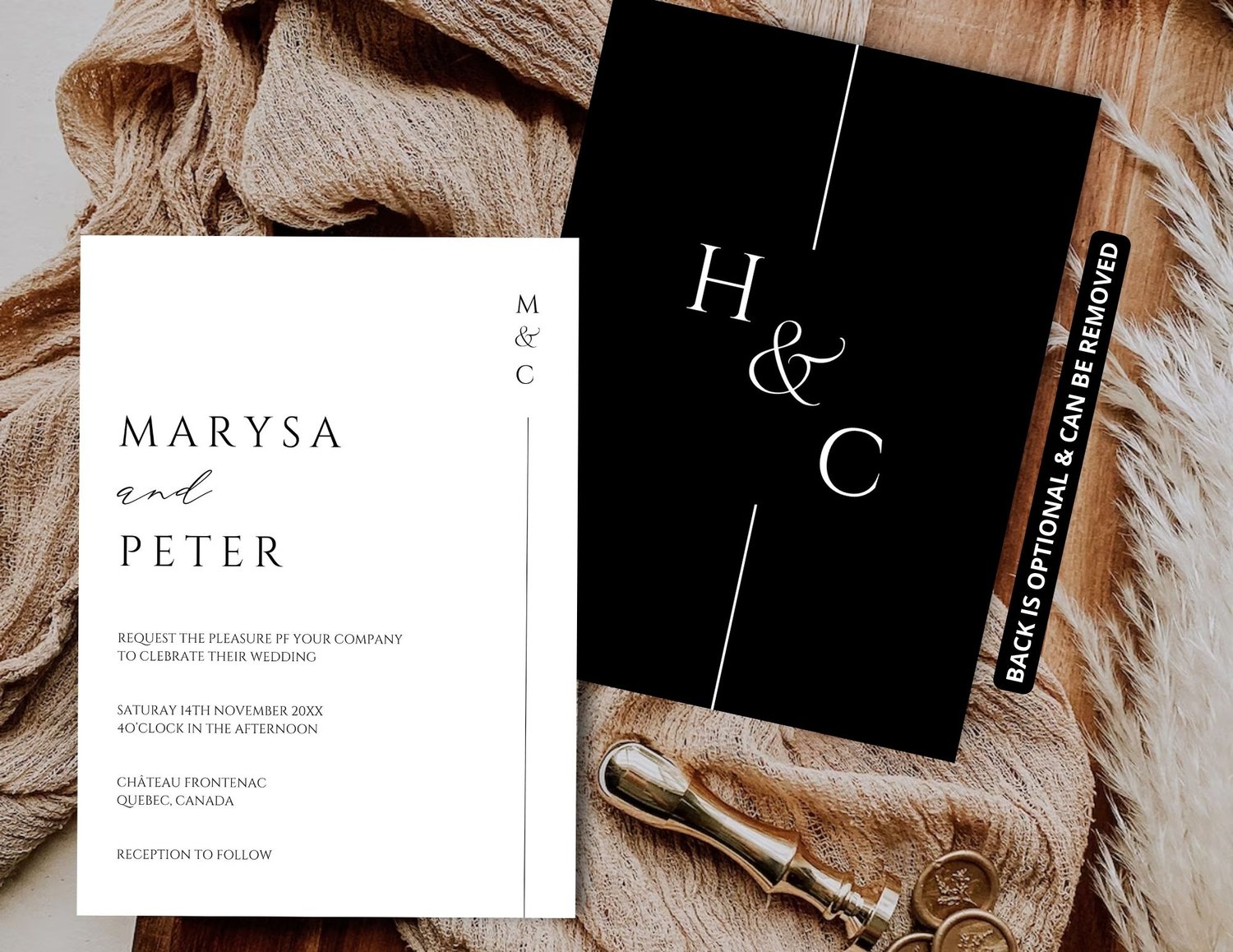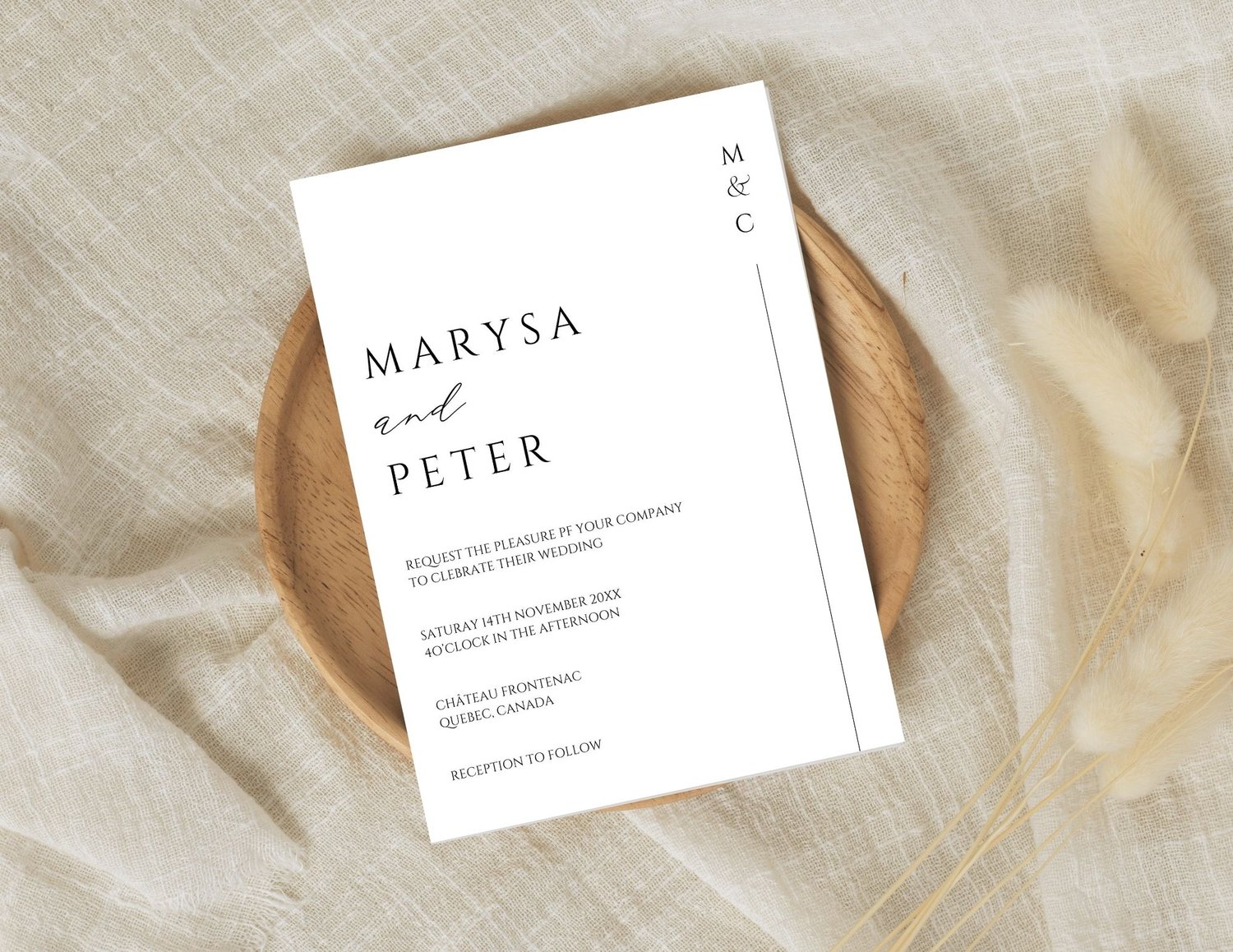 This Modern Minimal Wedding Invitation Template features a sleek design with a modern minimalist layout for your wedding announcement, where you have full freedom to create something uniquely yours! With Instant Download, you can have your wedding invitation ready in no time. Say “I do” to this on-trend design that will impress your guests and set the tone for your upcoming nuptials.