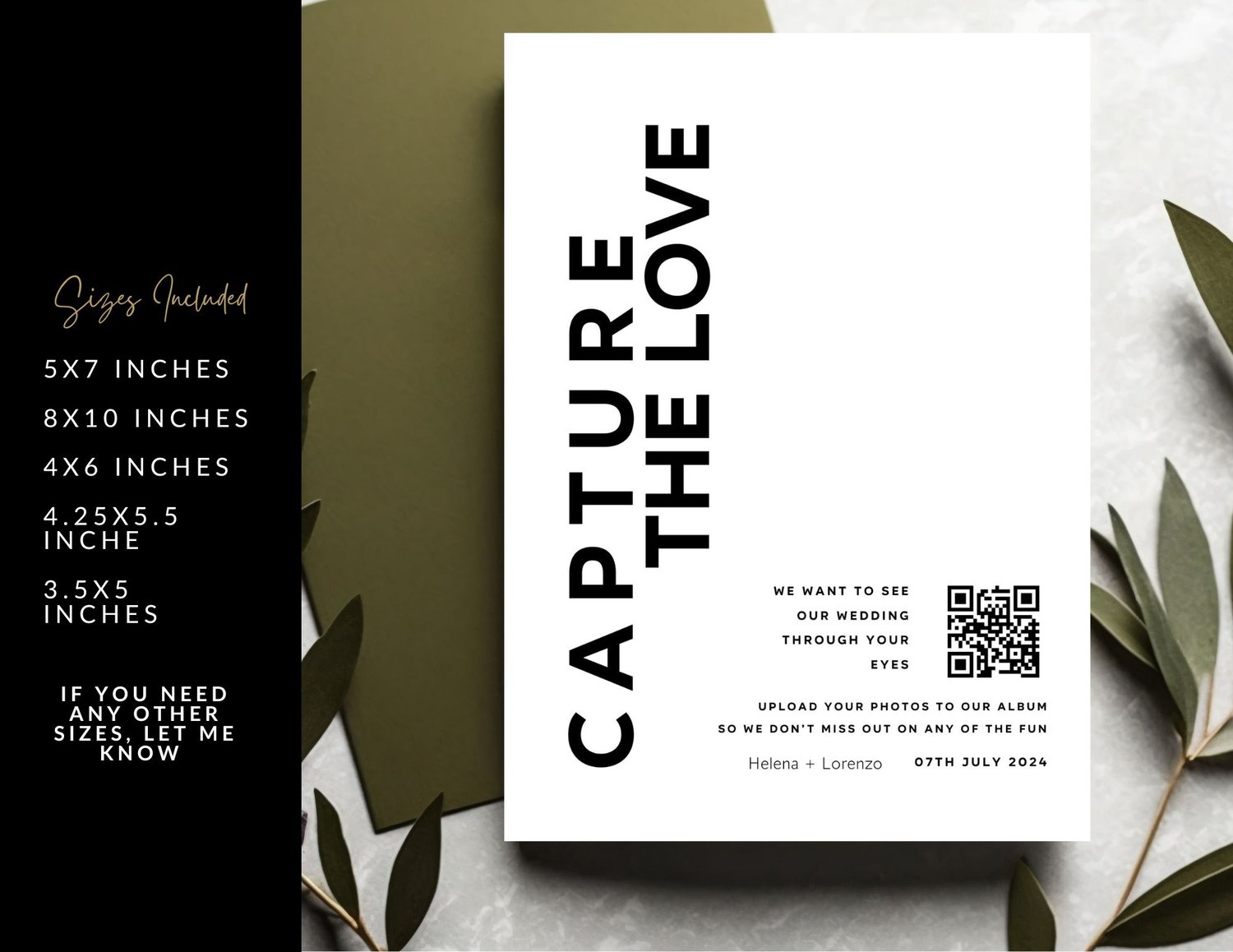 Make your wedding day even more memorable with our "Capture the Love" QR Code Sign. This charming sign is designed to encourage your guests to take photos and share their special moments with you.