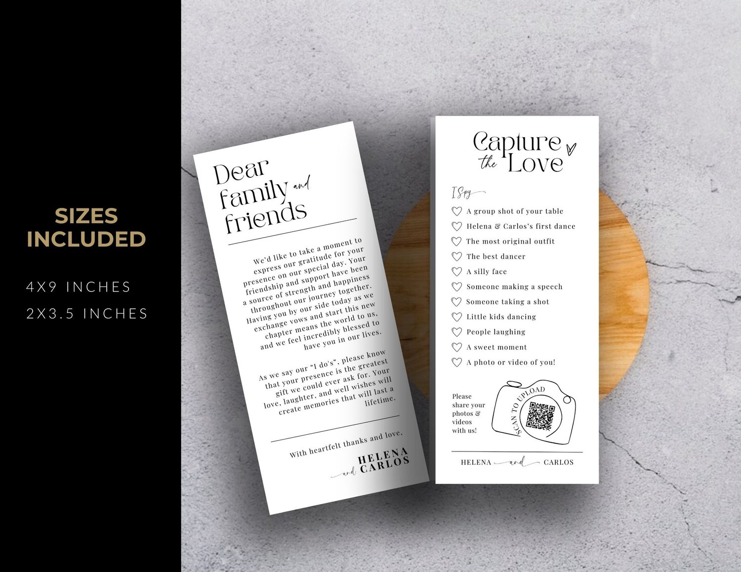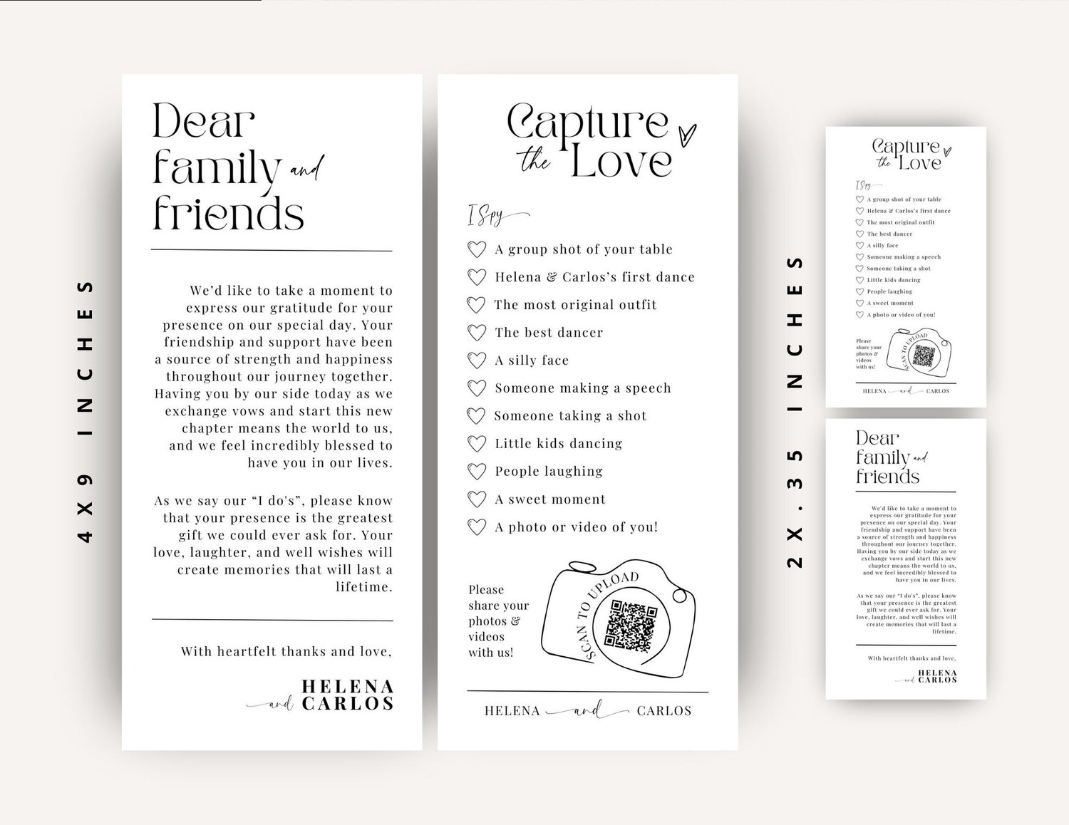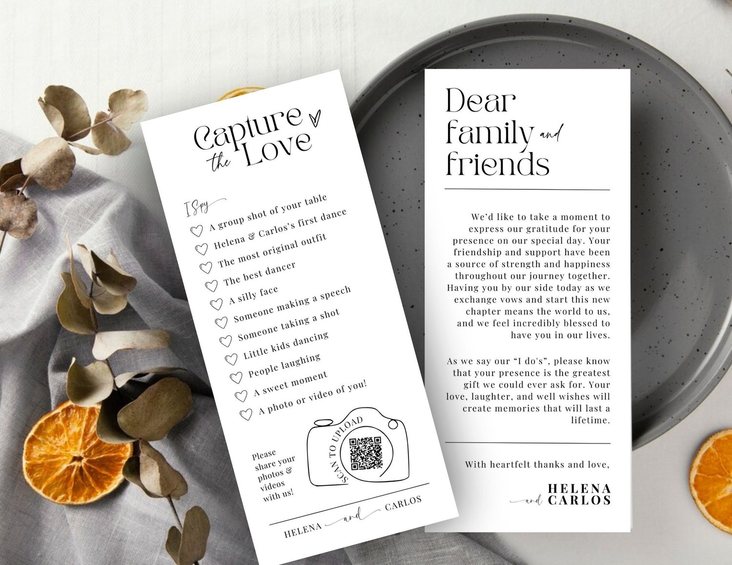 Make your wedding day unforgettable and involve everyone in creating a shared photo album filled with laughter, love, and joy. Order your I Spy Wedding Game Cards with QR Code today and add a touch of modern fun to your celebration!