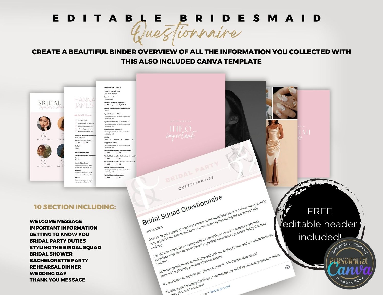 The Canva binder template adds a touch of sophistication to your bridal planning, making it not only efficient but also aesthetically pleasing. And with our header templates, your questionnaire will be as unique as your love story.