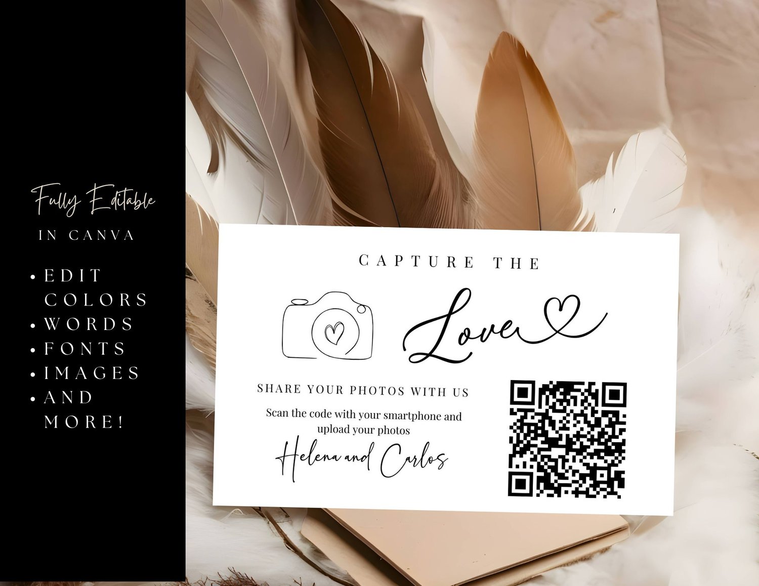 3.5" x 2" "Capture the Love" Editable QR Code Card