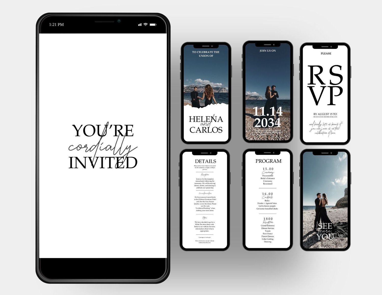Looking for additional customization or unique features? Explore our custom video options in our boutique's custom orders section. Whether you want custom changes to our template or a completely bespoke wedding video invitation, we have you covered. You will find these options in the Custom Order section of the boutique.