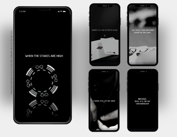 If creating your own proposal video feels overwhelming, let us do it for you! Our "Done For Me" service ensures a stress-free experience as we craft a stunning groomsman proposal video that perfectly captures your bond.