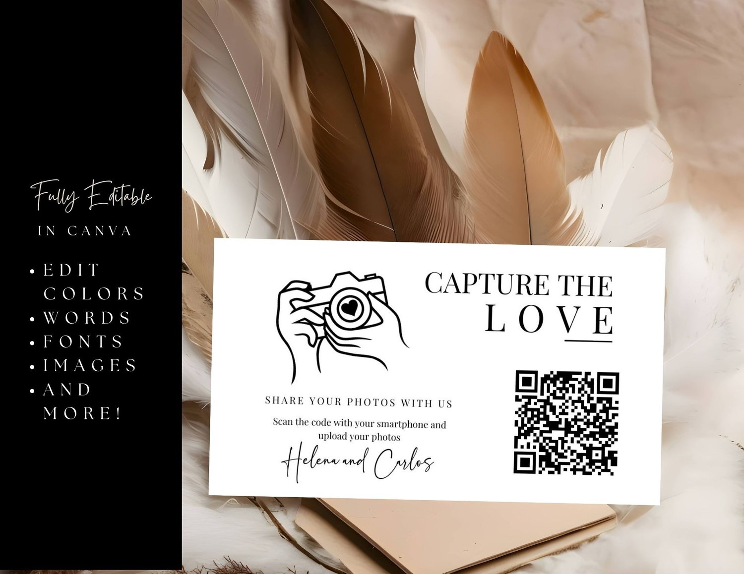3.5" x 2" "Capture the Love" Editable QR Code Card