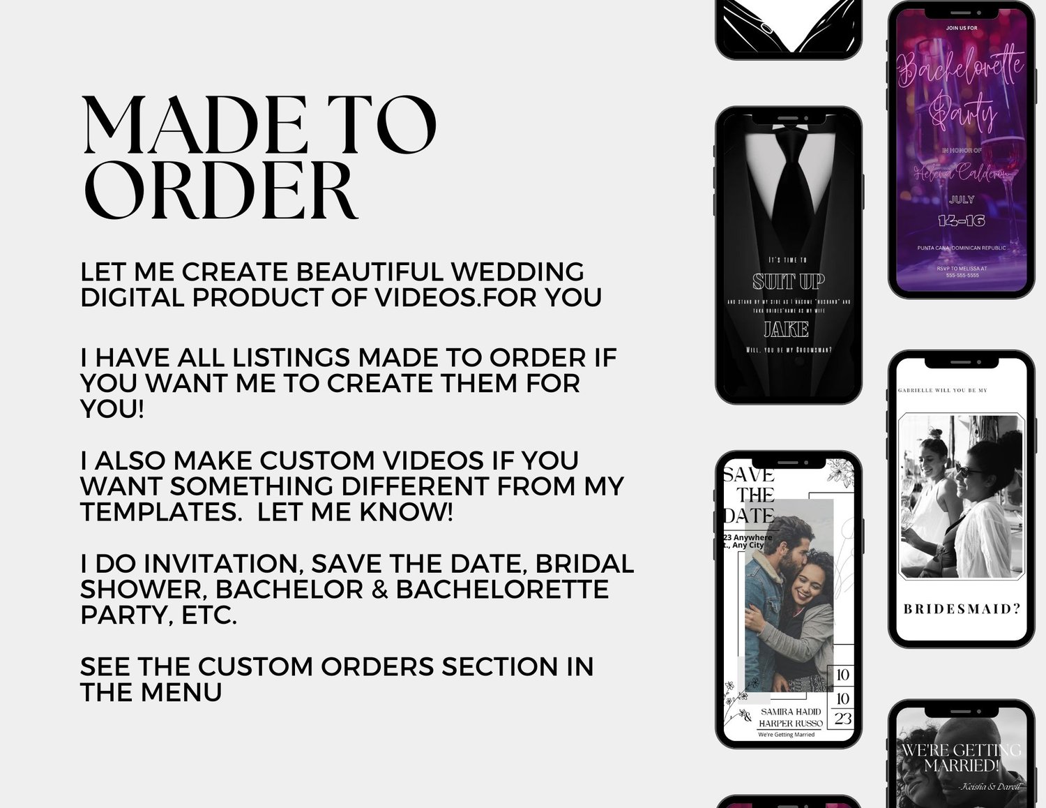 If creating your own wedding video invitation feels overwhelming, let us do it for you! Our "Done For Me" service ensures a stress-free experience as we craft a stunning and personalized wedding video invitation that perfectly captures the magic of your special day. How it works: