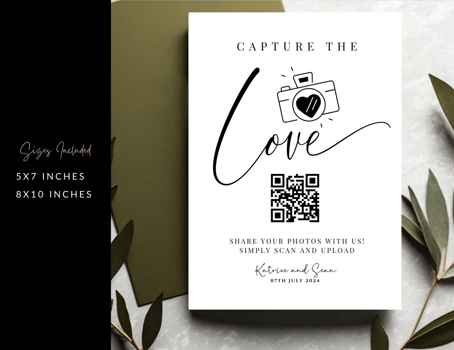 Make your wedding day even more memorable with our "Capture the Love" QR Code Sign. This charming sign is designed to encourage your guests to take photos and share their special moments with you.
