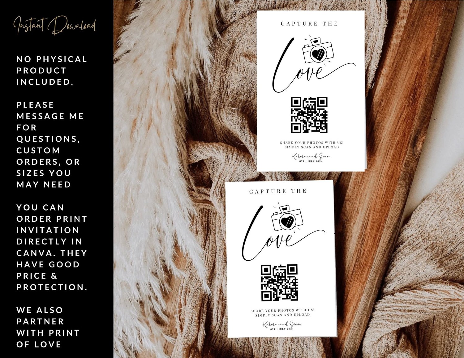 Capture the love with this wedding card with QR code in a minimalist design for your wedding day. This QR code card is perfect for easily and quickly sharing photos and social media posts from your guests.