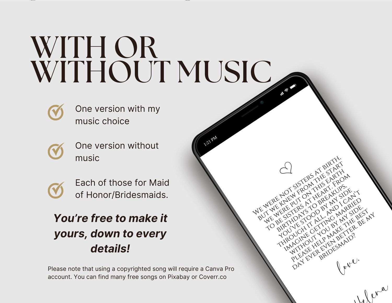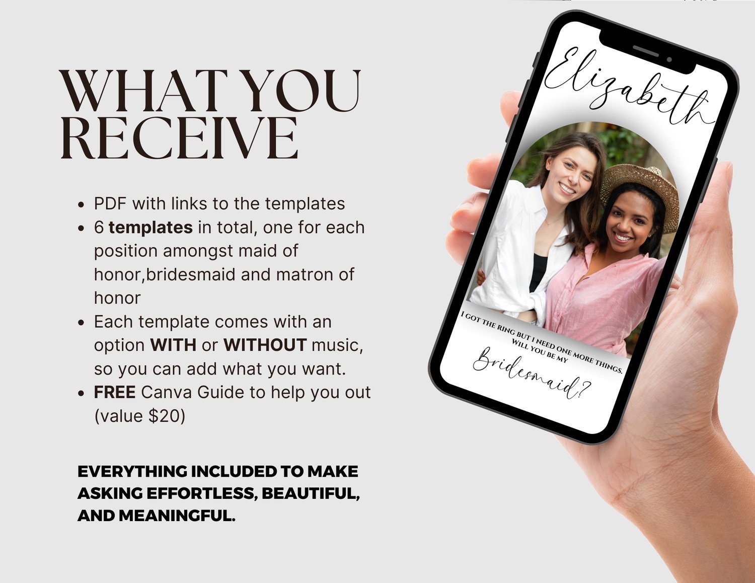 Bridesmaid Proposal Video Invitation | Editable Canva Template | BVP050