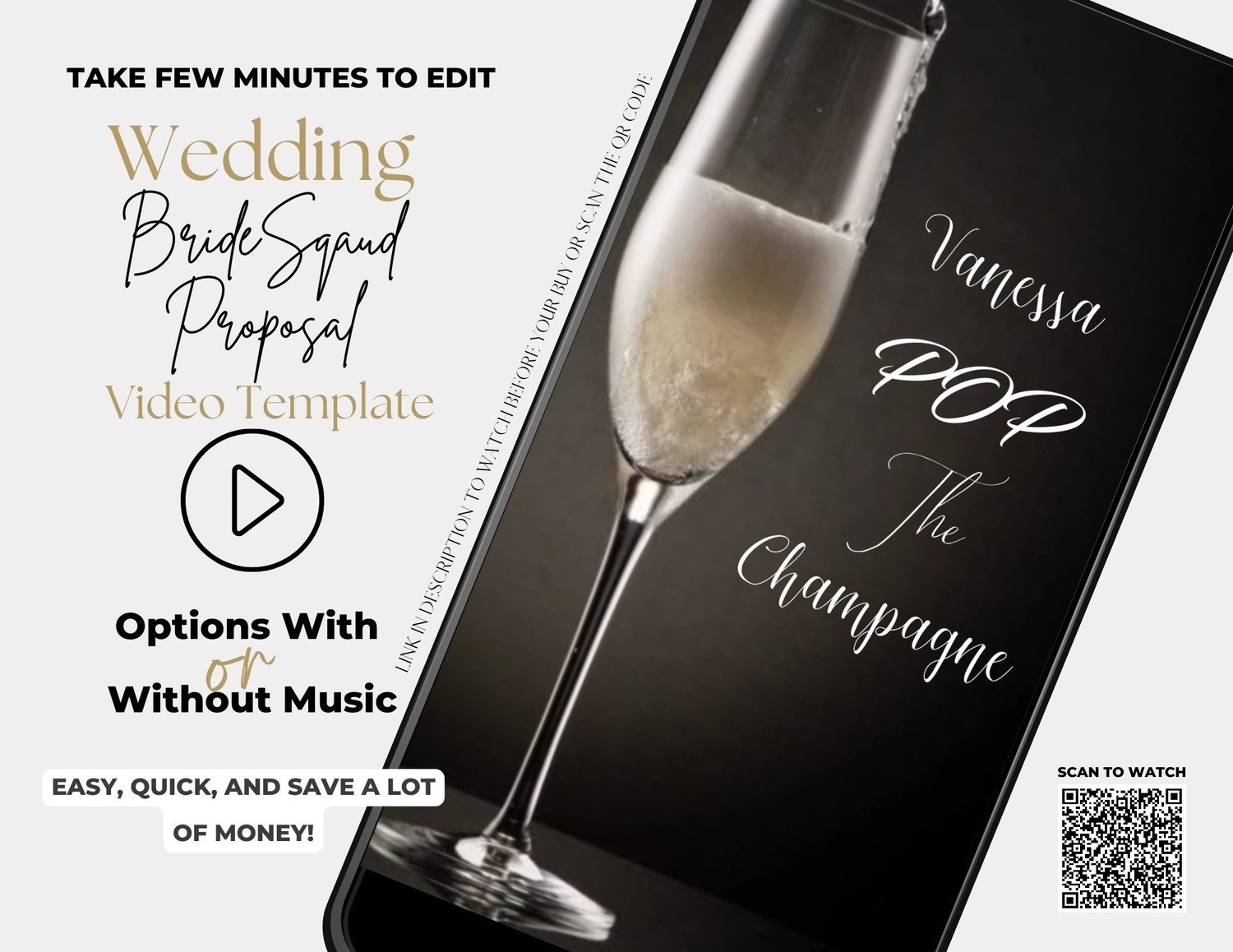 - Instant Download: Say goodbye to waiting for shipping! Once you've customized your video, you can instantly download it as an .mp4 file. Share it on your social media platforms or send it directly to your bridal crew through digital channels.