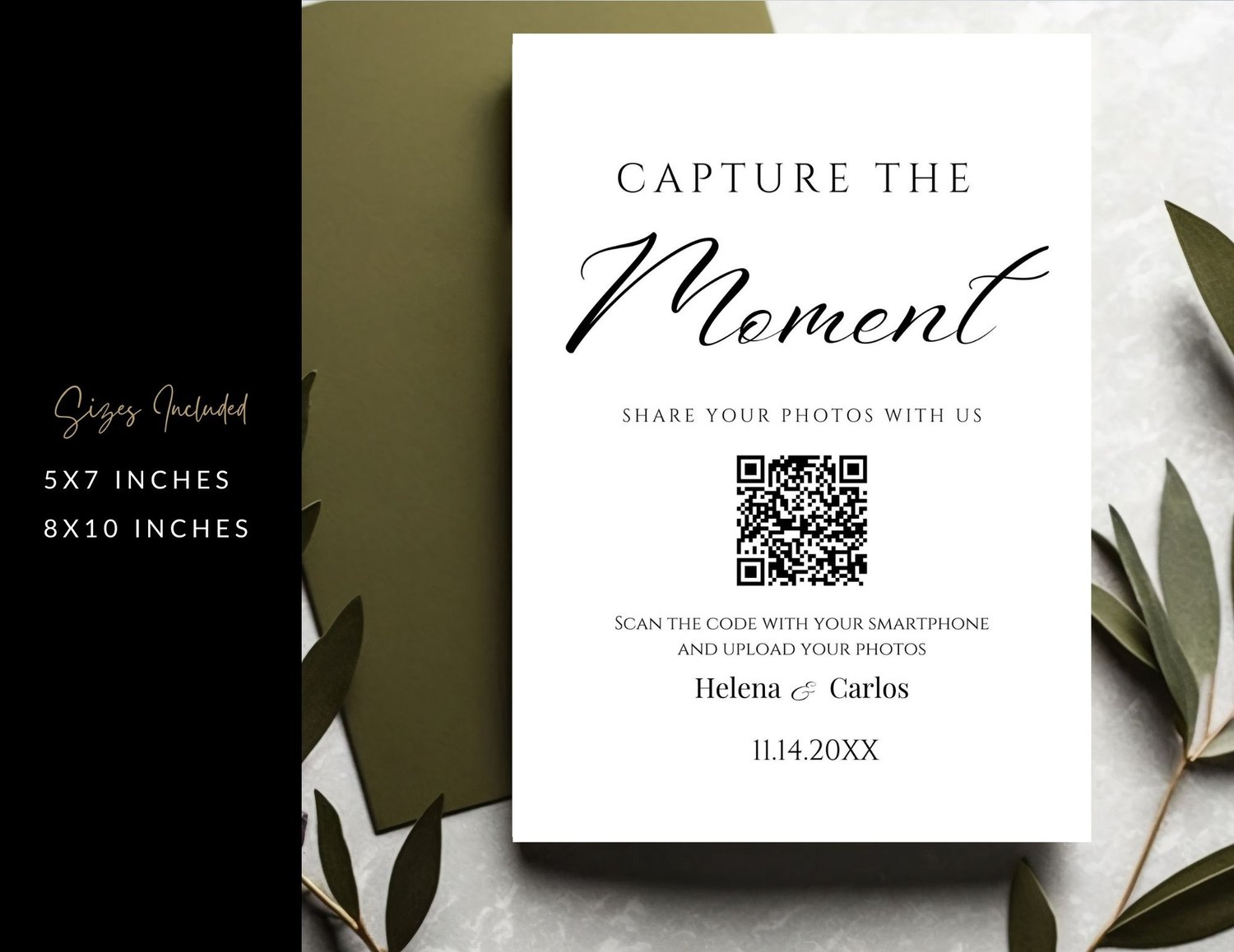 Make your wedding day even more memorable with our "Capture the Love" QR Code Sign. This charming sign is designed to encourage your guests to take photos and share their special moments with you.