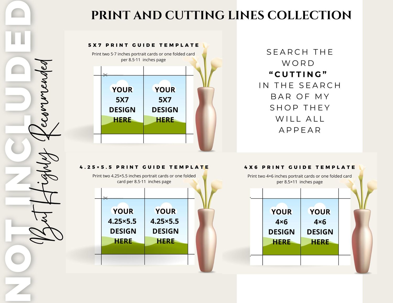 At home (with options to print multiple cards per sheet 8.5×11 or A4 sheet, or directly onto 5×7 card stock).