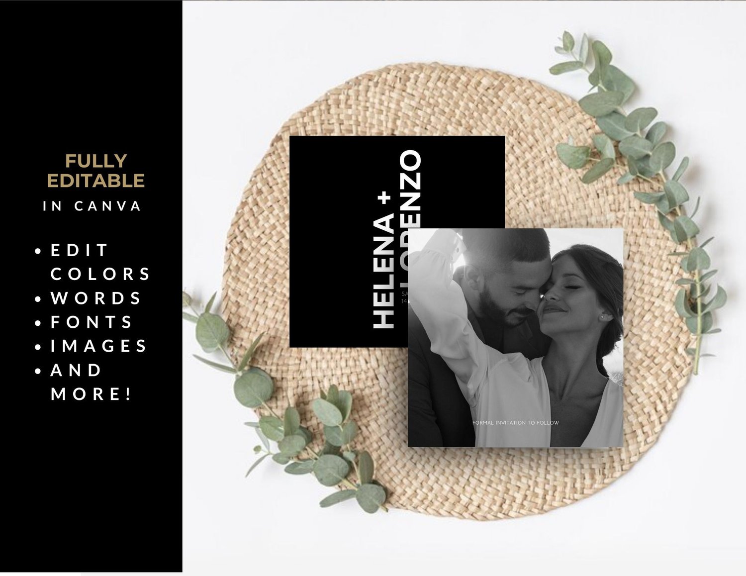 This Modern Minimal Save the Date Template features a sleek design with space for your favorite engagement photo (s). This fully editable photo Save the Date template features a modern minimalist layout for your Save the Date announcement, where you have full freedom to create something uniquely yours! With Instant Download, you can have your Save the Date ready in no time. Say “I do” to this on-trend design that will impress your guests and set the tone for your upcoming nuptials.