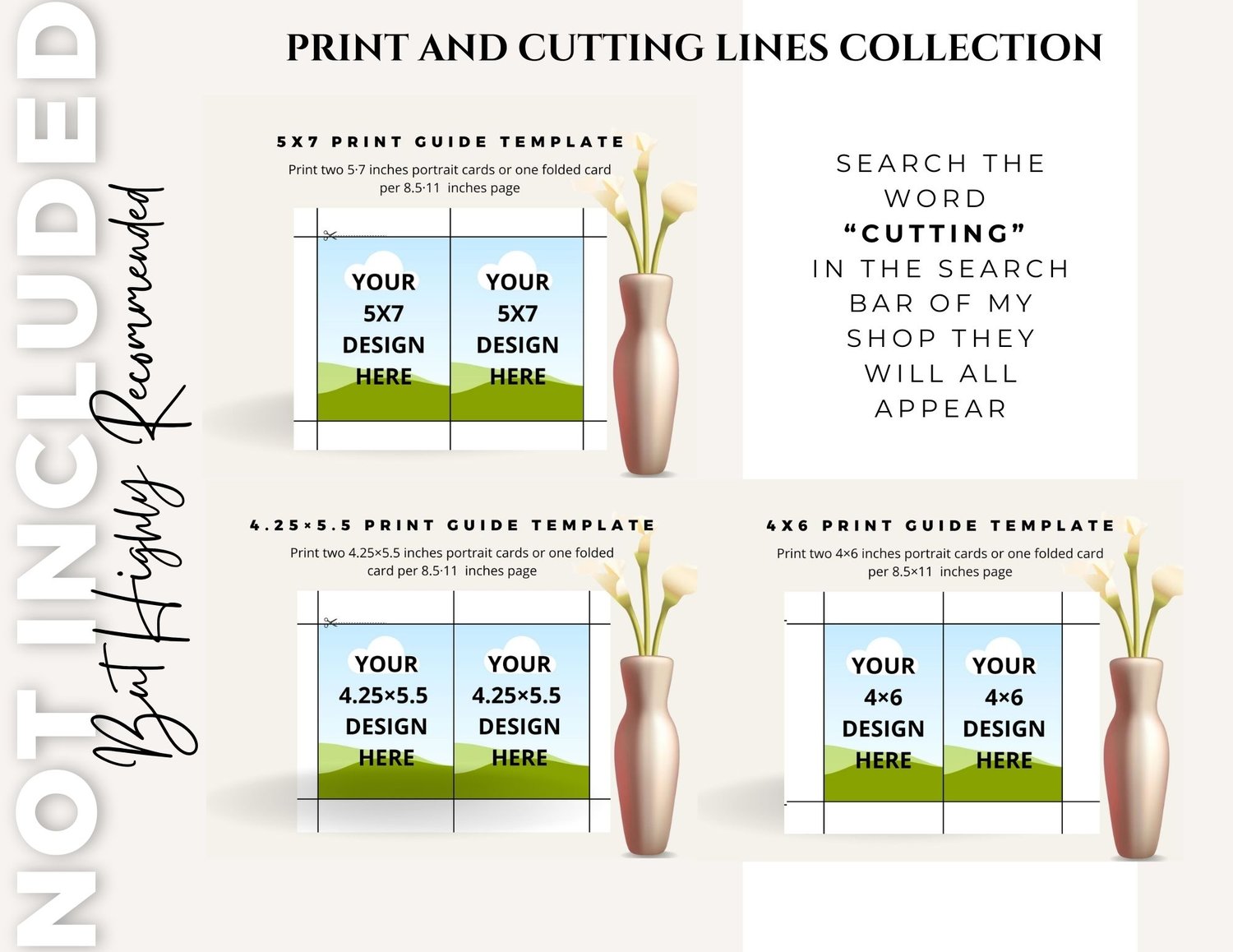 - At home (with options to print multiple cards per sheet 8.5×11 or A4 sheet, or directly onto 5×7 card stock).