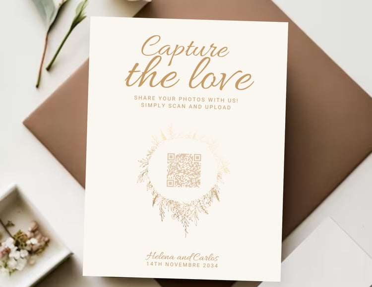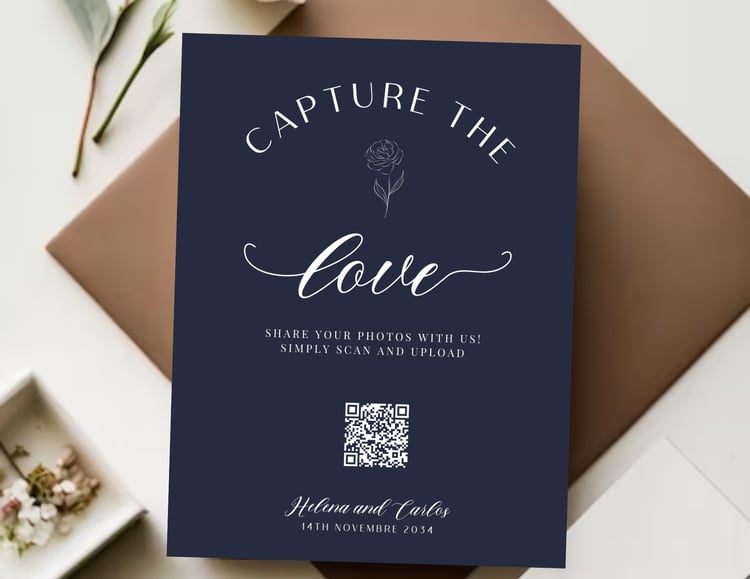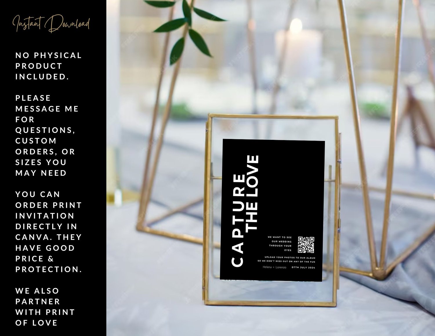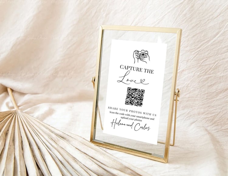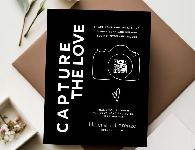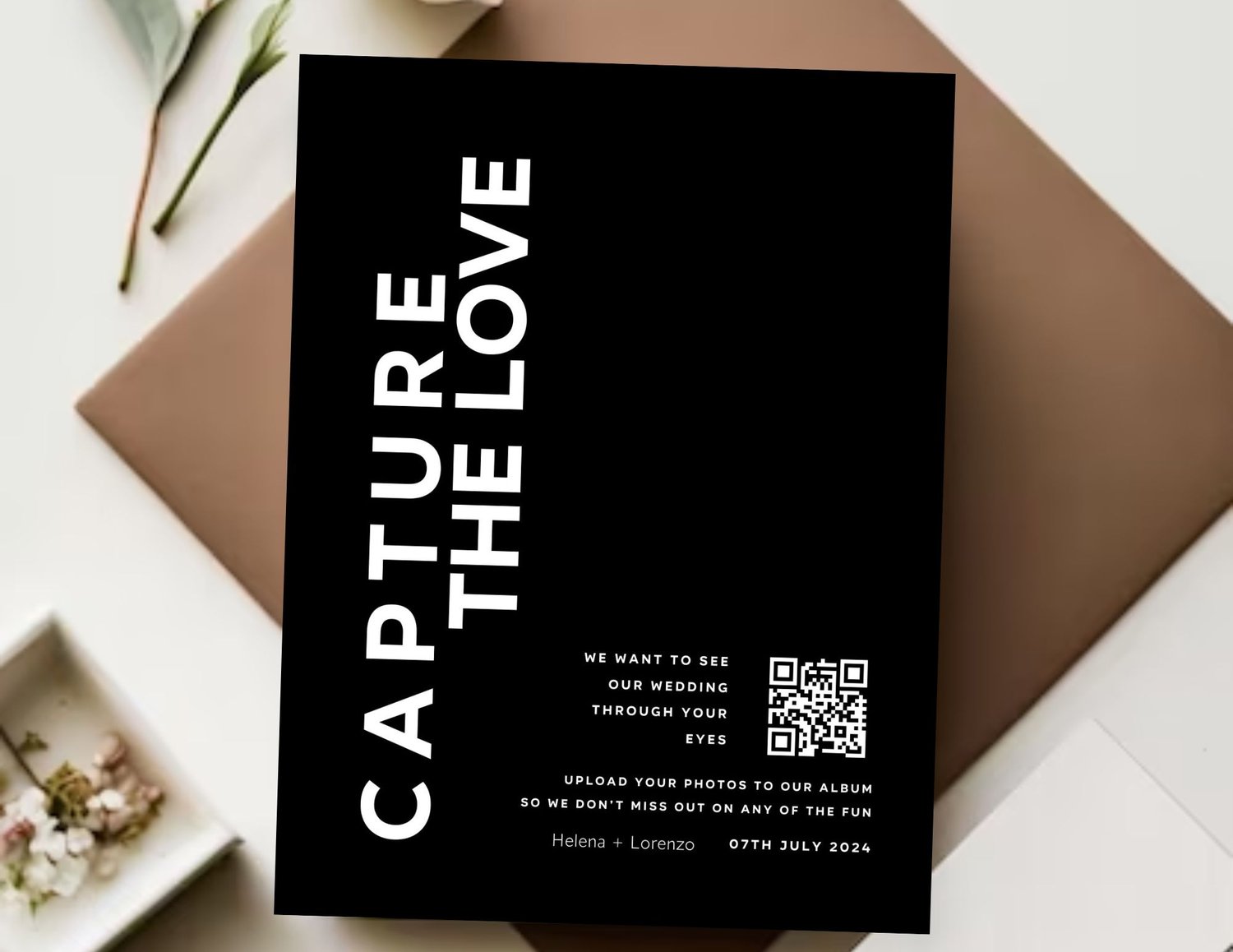Make your wedding day even more memorable with our "Capture the Love" QR Code Sign. This charming sign is designed to encourage your guests to take photos and share their special moments with you.