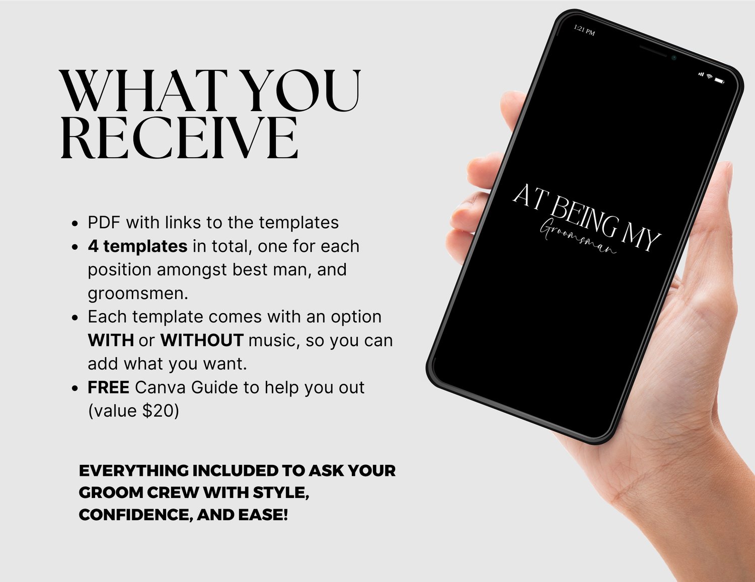 Asking someone to stand by your side matters. This animated groomsman proposal helps you ask in a way that feels intentional, confident, and effortless, without awkward wording, jokes that miss the mark, or overexplaining. Just a clear message delivered with rythm and sublte movement, keeping the focus where it belongs, on the proposal itself.