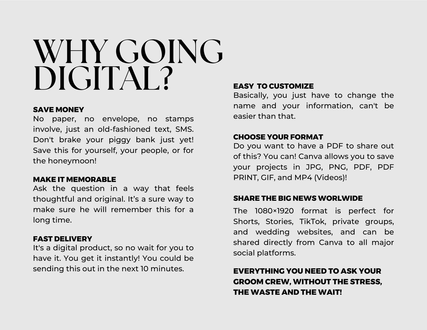 Pop the question to your groomsmen in a way that stands out and captures the essence of your friendship. Download our Canva Wedding Video Invitation Template now, and let the celebration begin! #GroomsmanProposal #BestMan #WeddingParty #BridaLoveVows