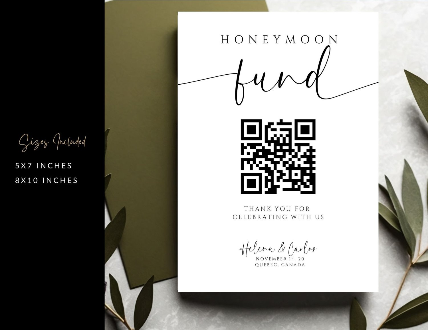 Whether you want to announce that your wedding is funded or simply remind guests of the option for a cash gift, this QR code sign is the perfect addition. Simplify your gift-giving process and keep your wedding day stress-free with this elegant and practical solution.