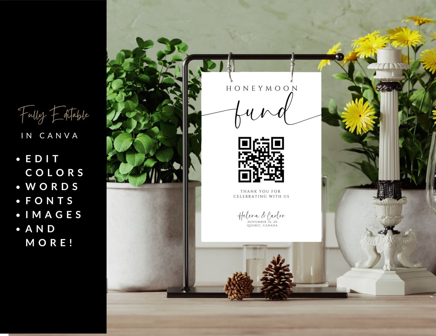 Looking to add a modern and simplistic touch to your wedding? Look no further than our Honeymoon Fund QR Code Sign. This stylish and minimalistic sign not only enhances your wedding decor but also provides a seamless way for guests to contribute to your honeymoon fund.