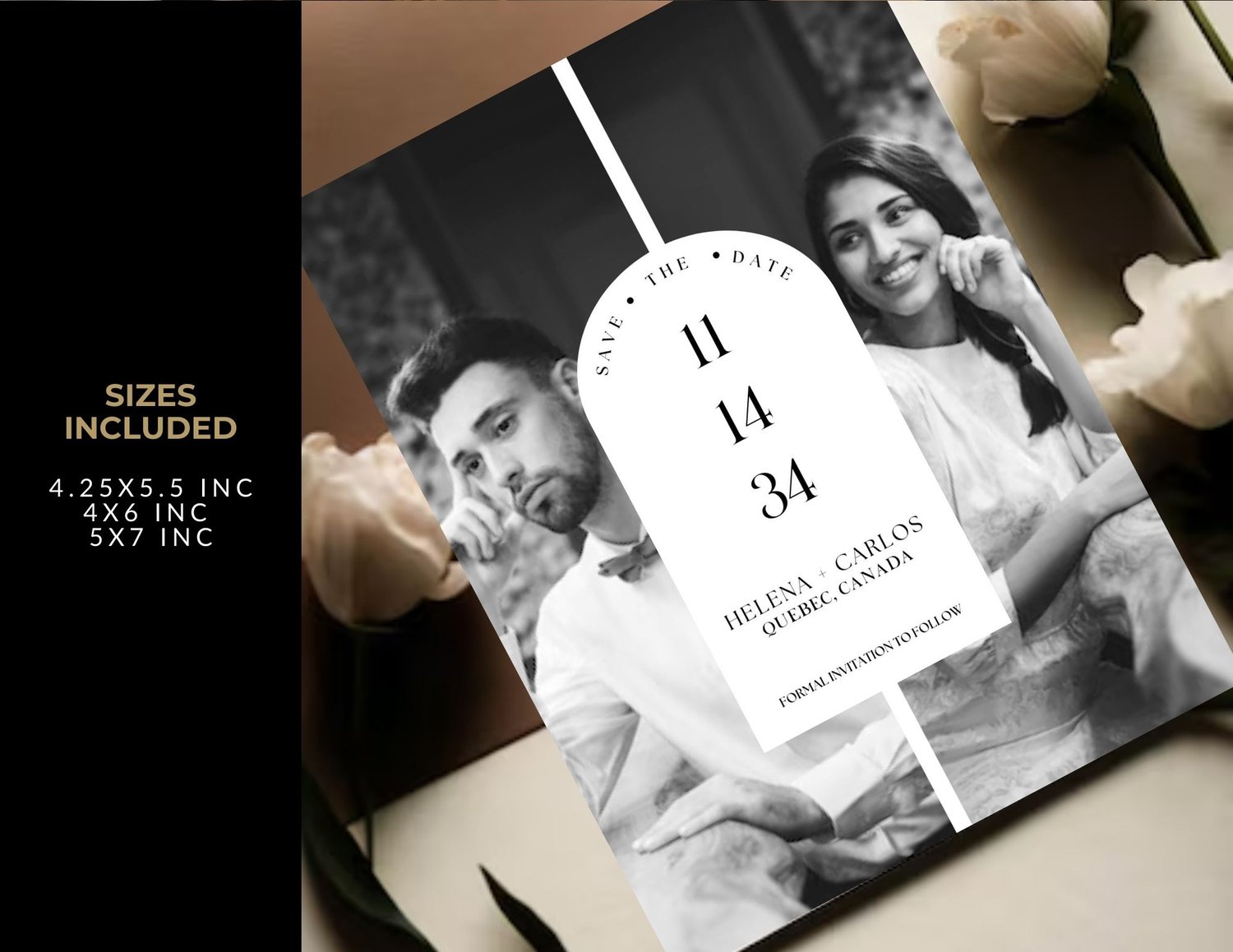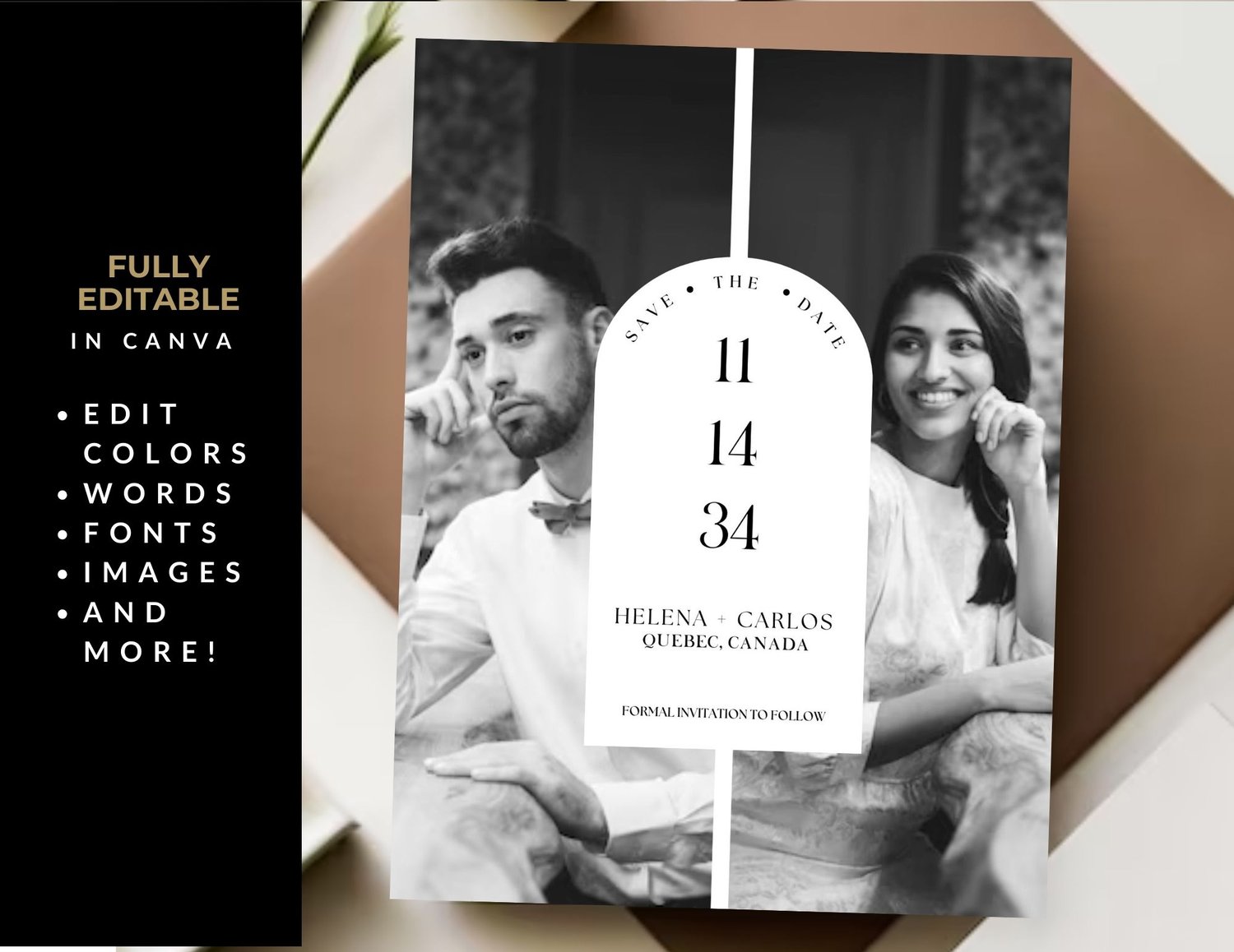 This Modern Minimal Save the Date Template features a sleek design with space for your favorite engagement photo (s). This fully editable photo Save the Date template features a modern minimalist layout for your Save the Date announcement, where you have full freedom to create something uniquely yours! With Instant Download, you can have your Save the Date ready in no time. Say “I do” to this on-trend design that will impress your guests and set the tone for your upcoming nuptials.