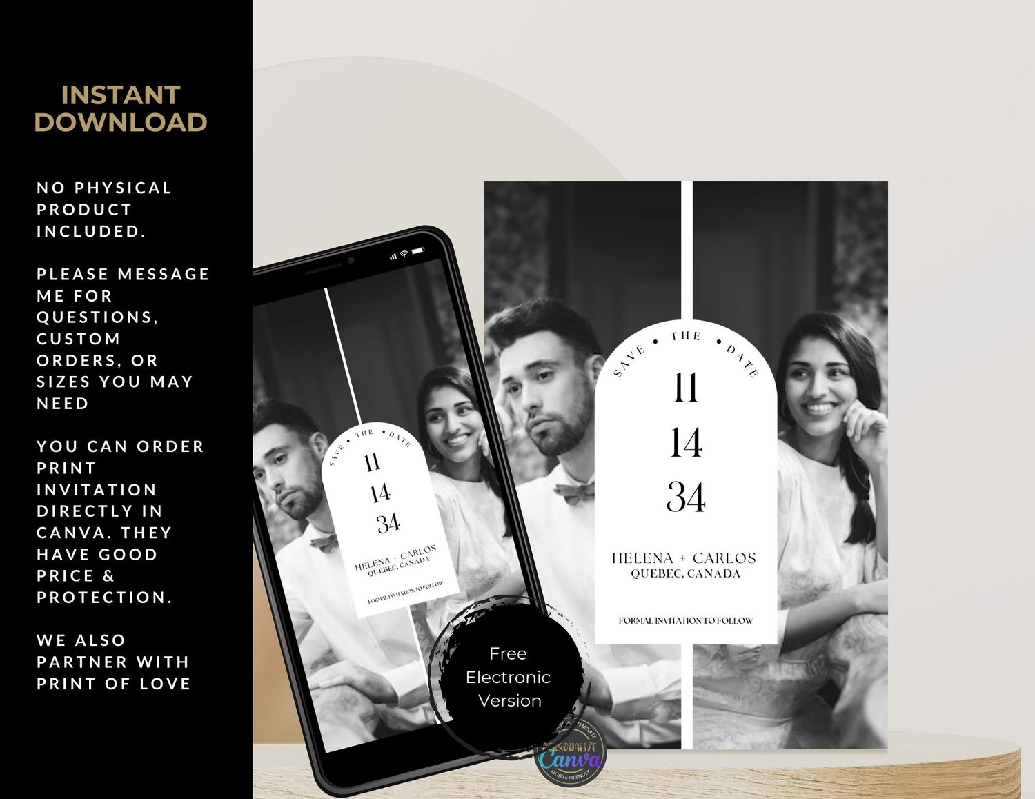 Receive your product via a Canva link to download it in your preferred format.