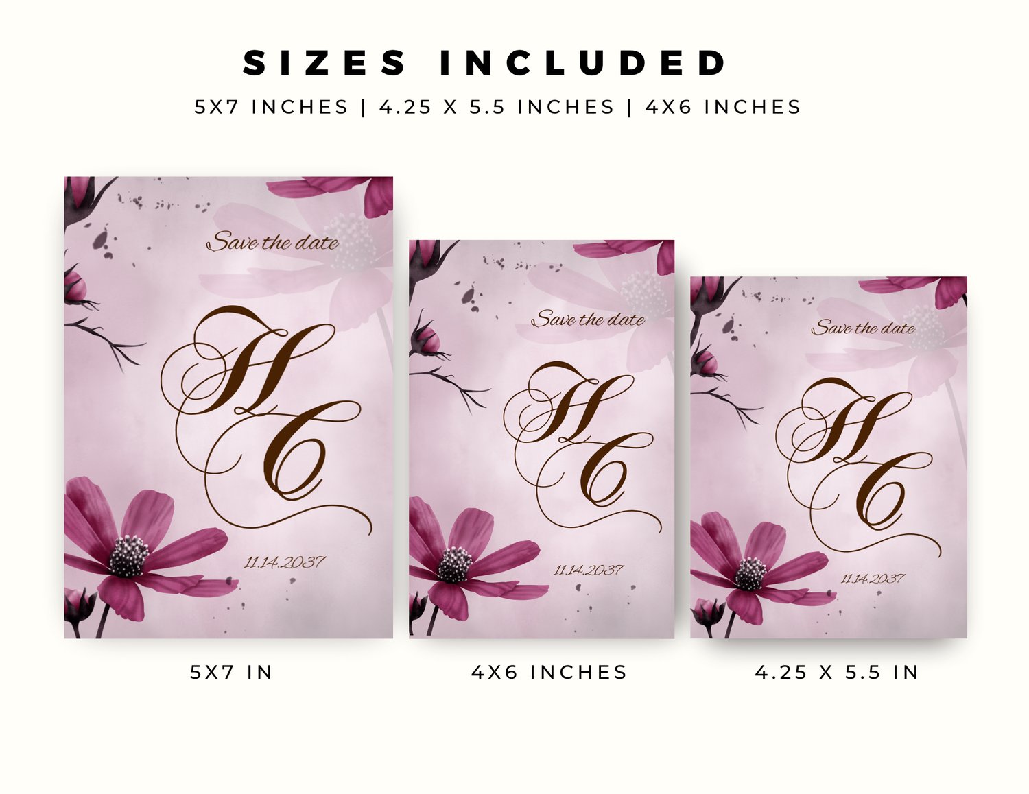 ✔ Multiple Sizes Included — 5×7, 4×6, and 4.25×5.5 inches. Complimentary 1080×1920 pixels.