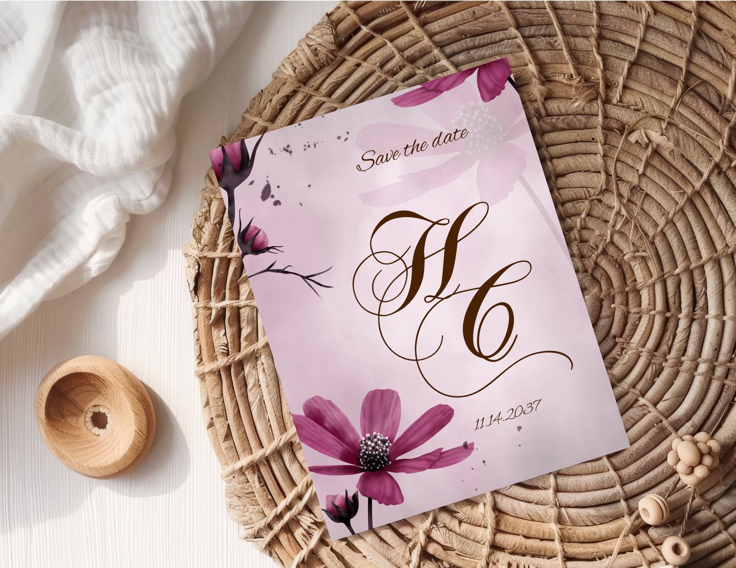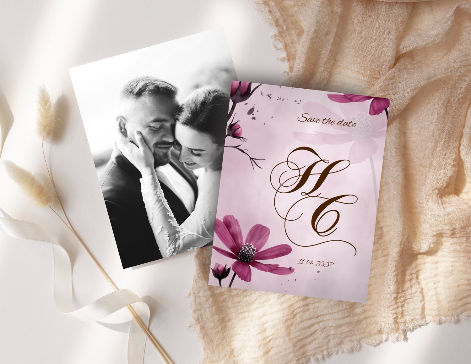 Announce your special day with romantic grace using this Magenta Field Save the Date Template. Featuring a soft watercolor blush background adorned with vivid magenta florals and an elegant script monogram, this design captures both timeless beauty and modern sophistication. Perfect for couples who want their stationery to feel artistic, refined, and effortlessly romantic.