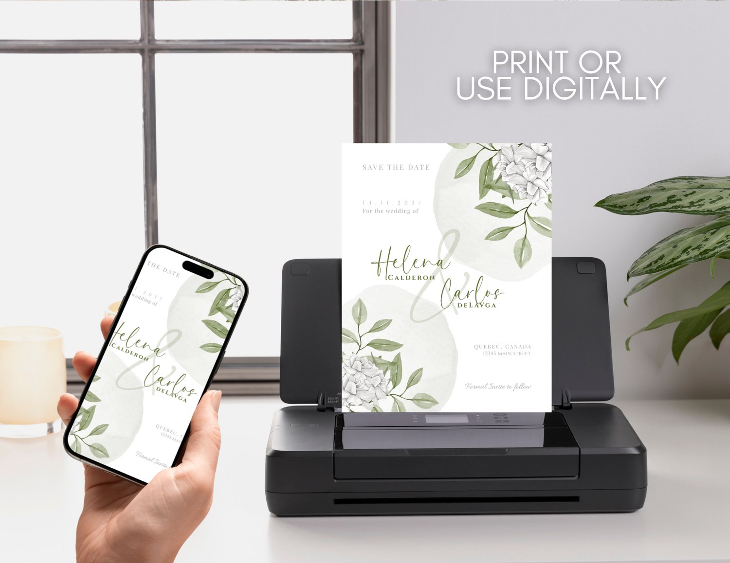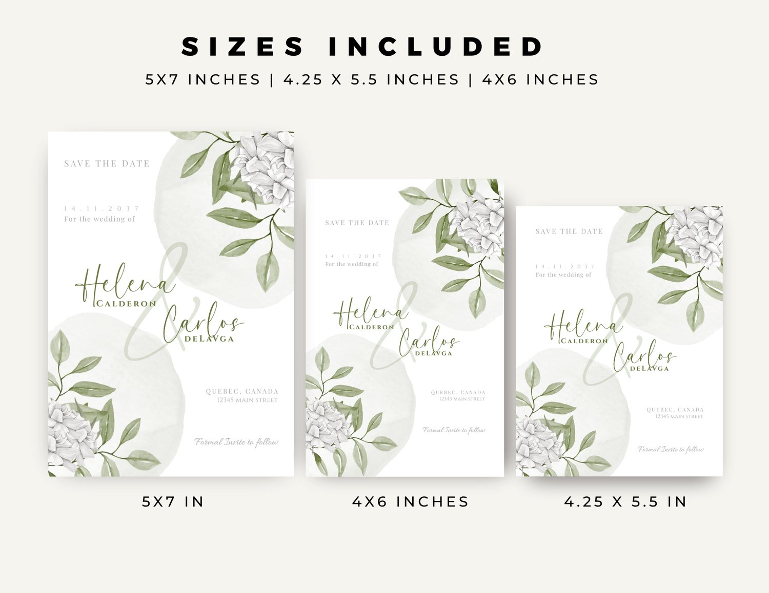 Announce your wedding with natural elegance and effortless charm using this Greenery & White Floral Save the Date Template. Hand-painted botanical illustrations pair with soft watercolor textures and modern script typography, creating a timeless balance of freshness and sophistication. The subtle green tones and delicate white florals make this design ideal for couples who love understated beauty and organic detail, a look that feels refined yet deeply romantic.