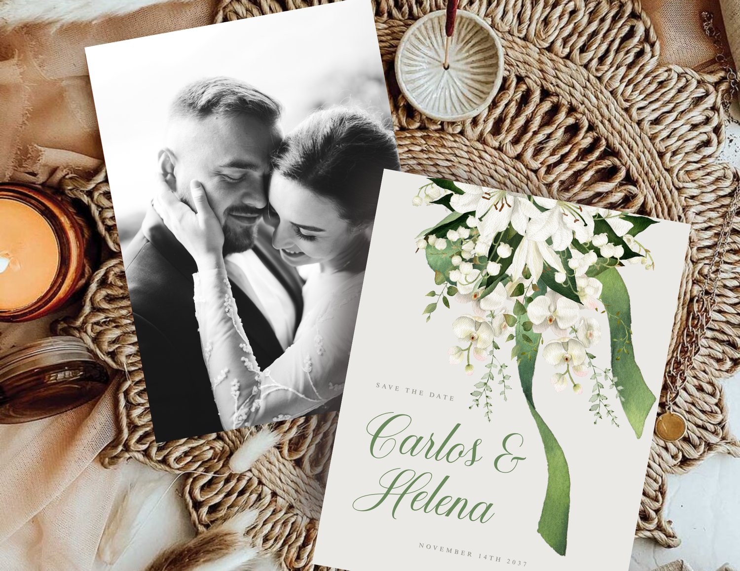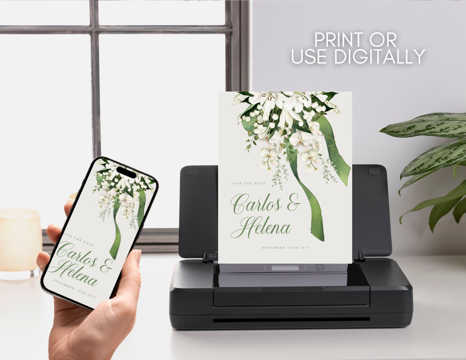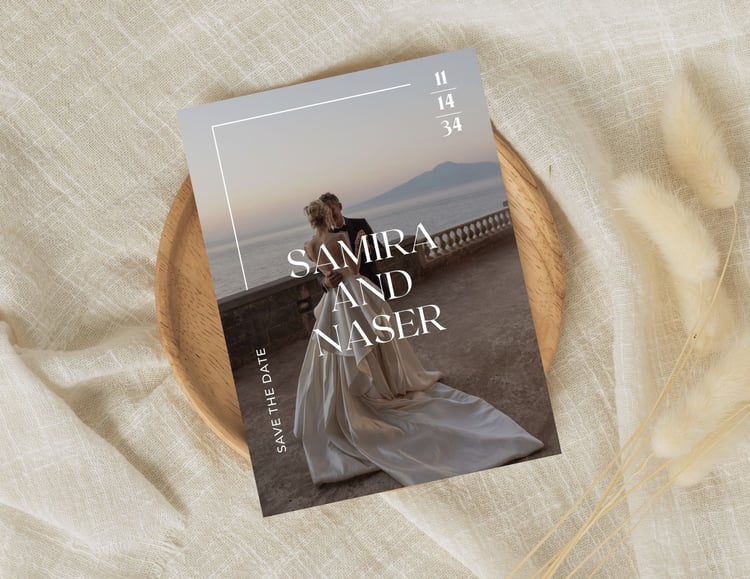 Fully editable in Canva, you can easily personalize the names, date, and wording in just minutes, no software required. Whether you’re hosting a garden ceremony, a modern minimalist affair, or a destination celebration surrounded by nature, this Save the Date offers a serene and polished way to share your upcoming wedding and invite guests to celebrate in style.