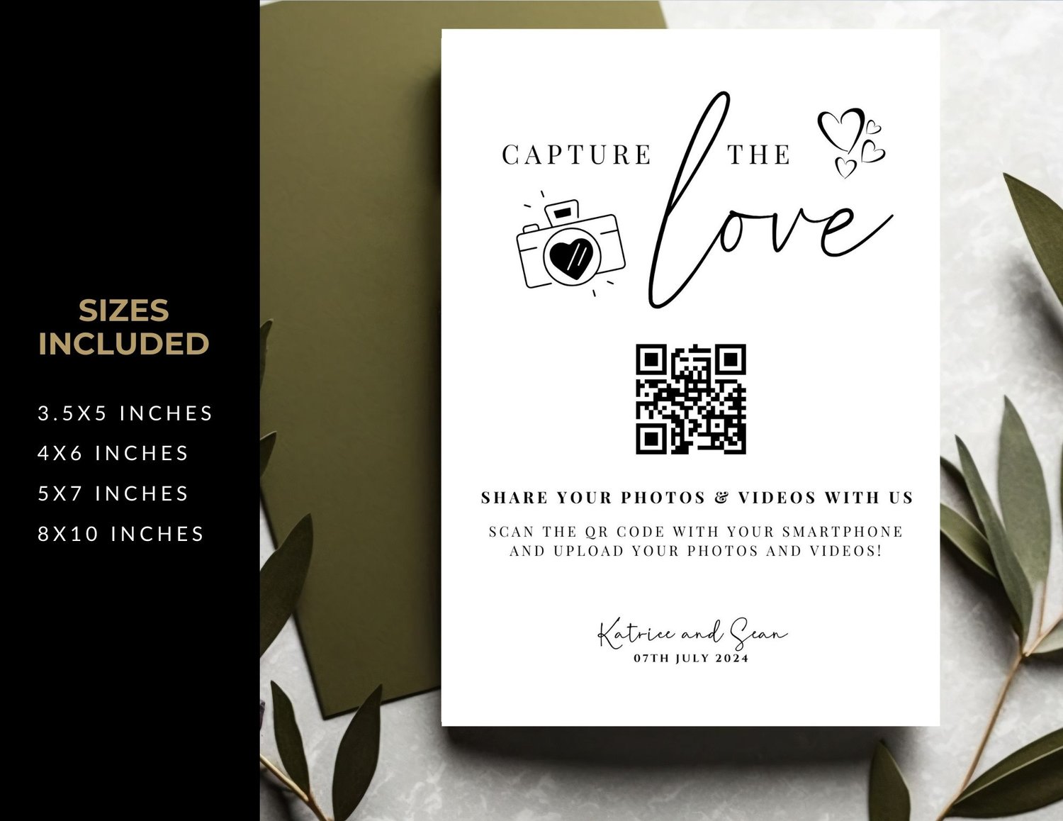 Make your wedding day even more memorable with our "Capture the Love" QR Code Sign. This charming sign is designed to encourage your guests to take photos and share their special moments with you.