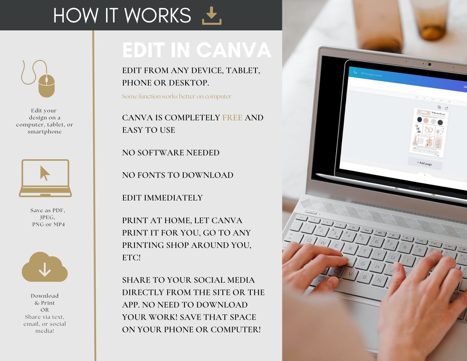 After your purchase, you'll receive an email with access links to download your Canva Template (usually within 15 minutes).